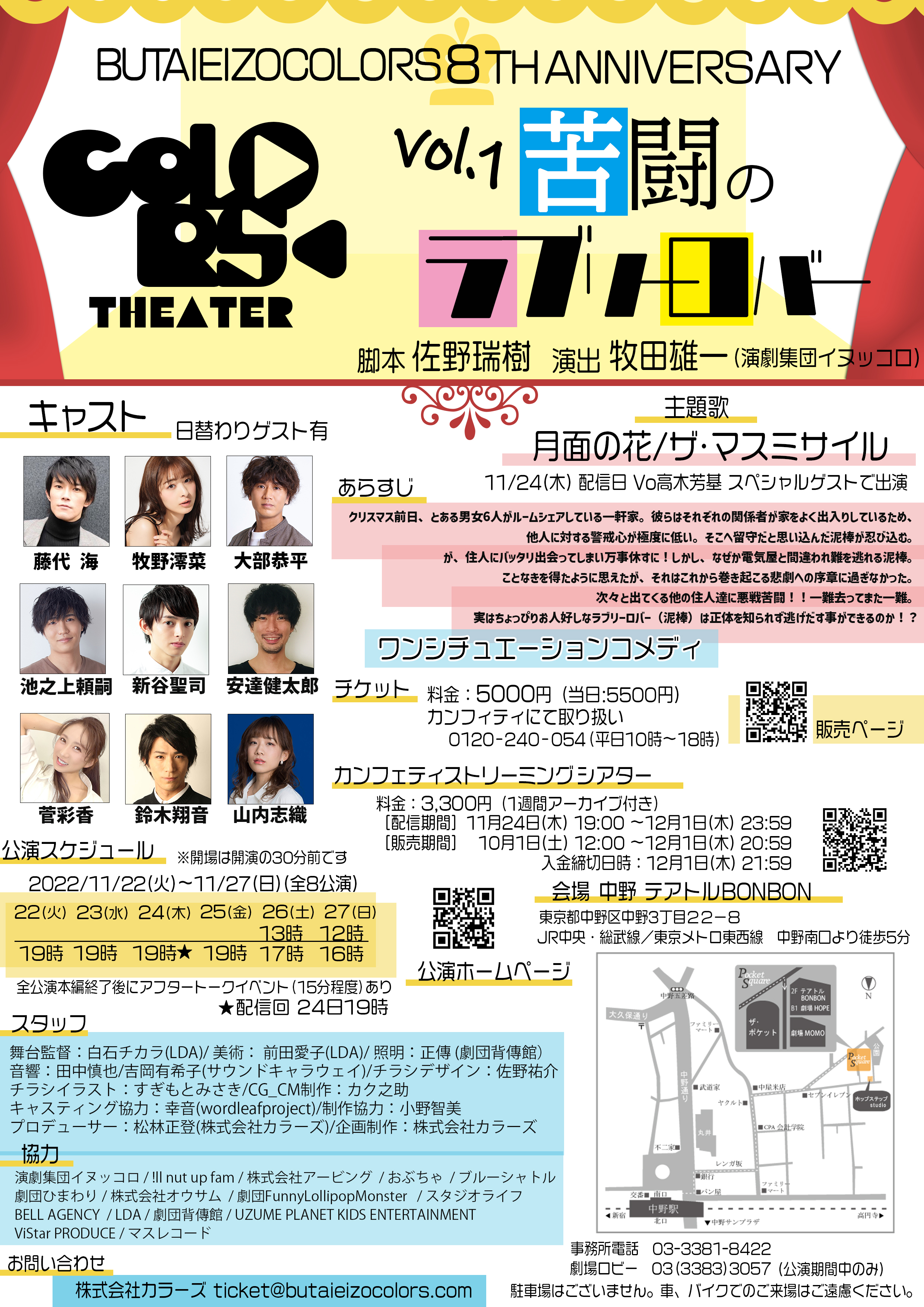 <協力> 演劇集団イヌッコロ/!ll nut up fam/株式会社アービング/おぶちゃ/ブルーシャトル/劇団ひまわり/株式会社オウサム/劇団FunnyLollipopMonster/スタジオライフ/BELL AGENCY/LDA/劇団背傳館/UZUME/PLANET KIDS ENTERTAINMENT/ViStar PRODUCE/アオイコーポレーション/令和華伝/劇団ロオル/WATER BIG BROTHERS/Julia/MASS RECORDS
